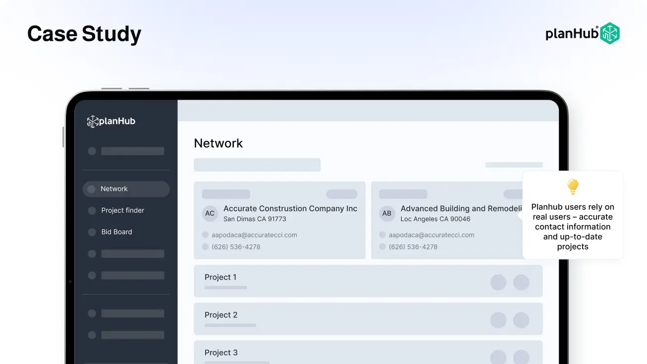 PlanHub is a two-sided marketplace connecting subcontractors and general contractors for construction projects. It streamlines project discovery, bid management, and communication so builders can find trustworthy partners quickly.