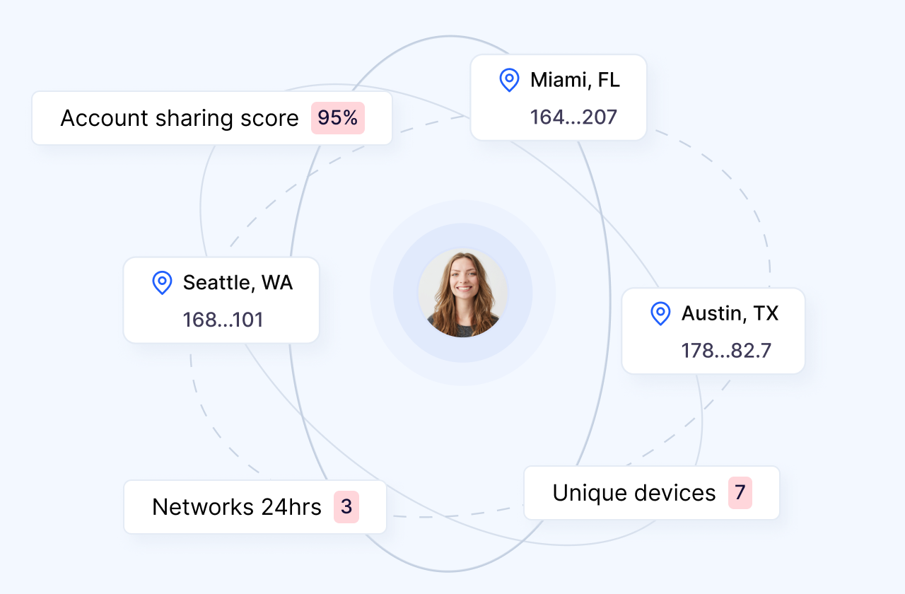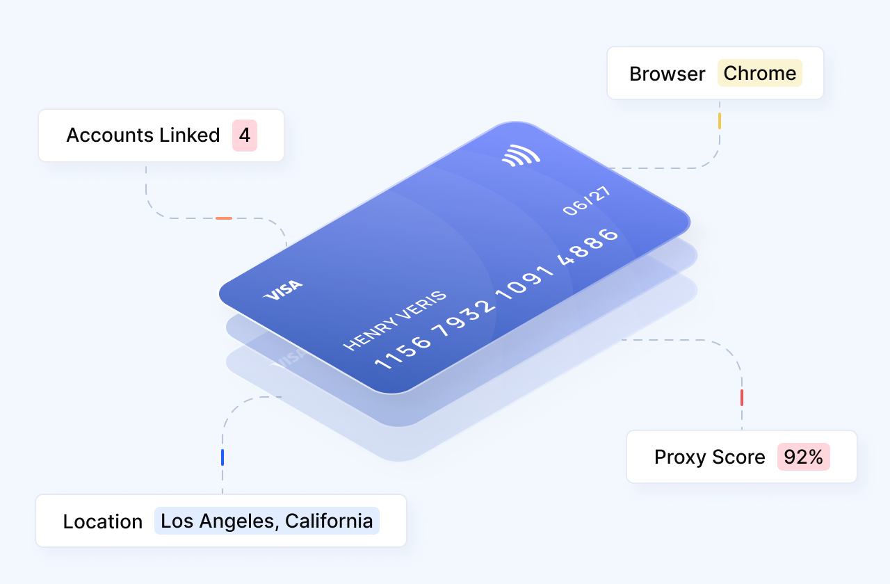 Identify mobile proxies, residential proxies, VPNs, and location spoofing used to evade controls. Verisoul validates where users are truly connecting from using active network forensics and device context.
