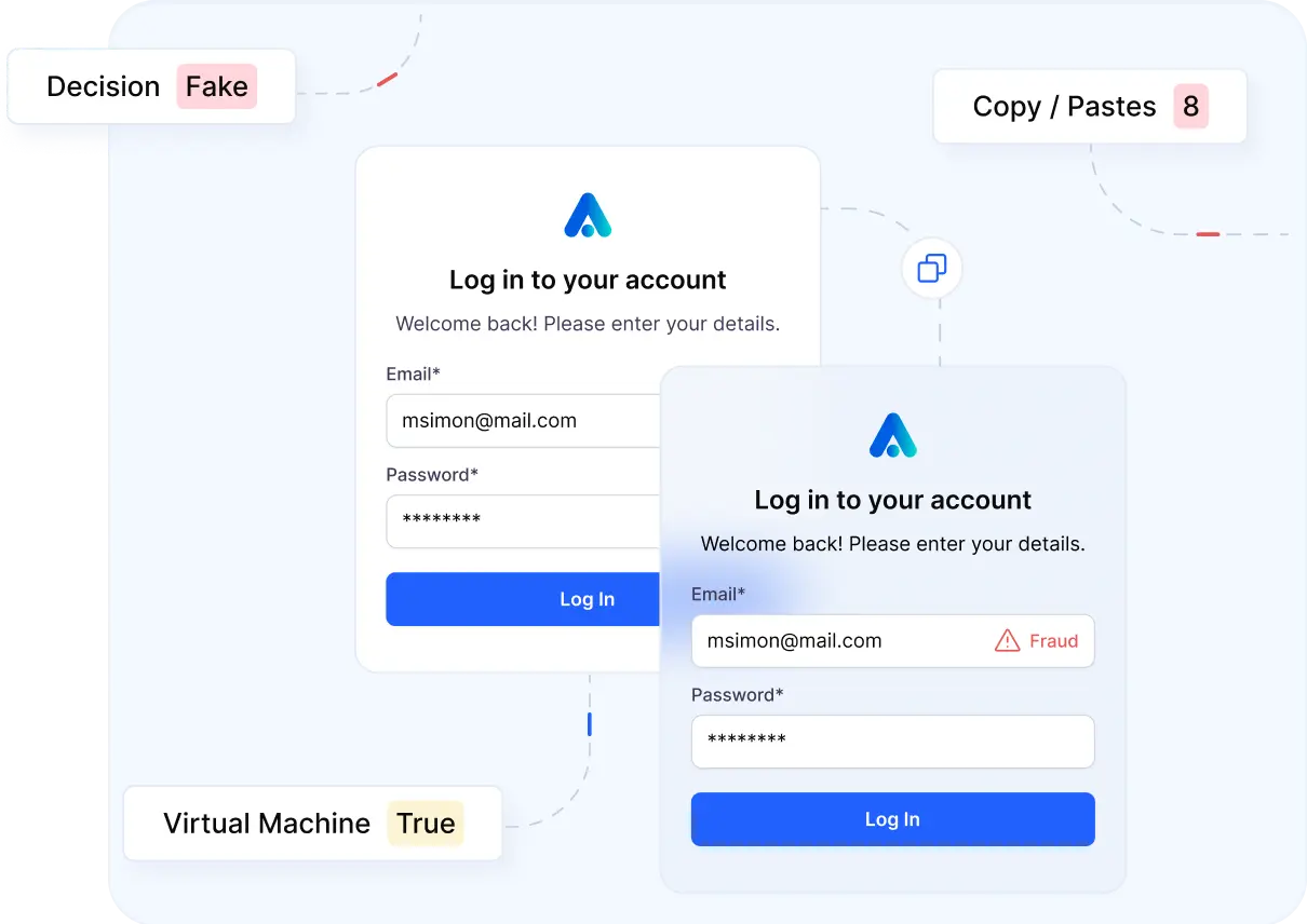 Detect suspicious logins and account access attempts before fraud escalates. Verisoul identifies abnormal device changes, impossible travel, and risky behavior associated with account takeovers without locking out legitimate users.
